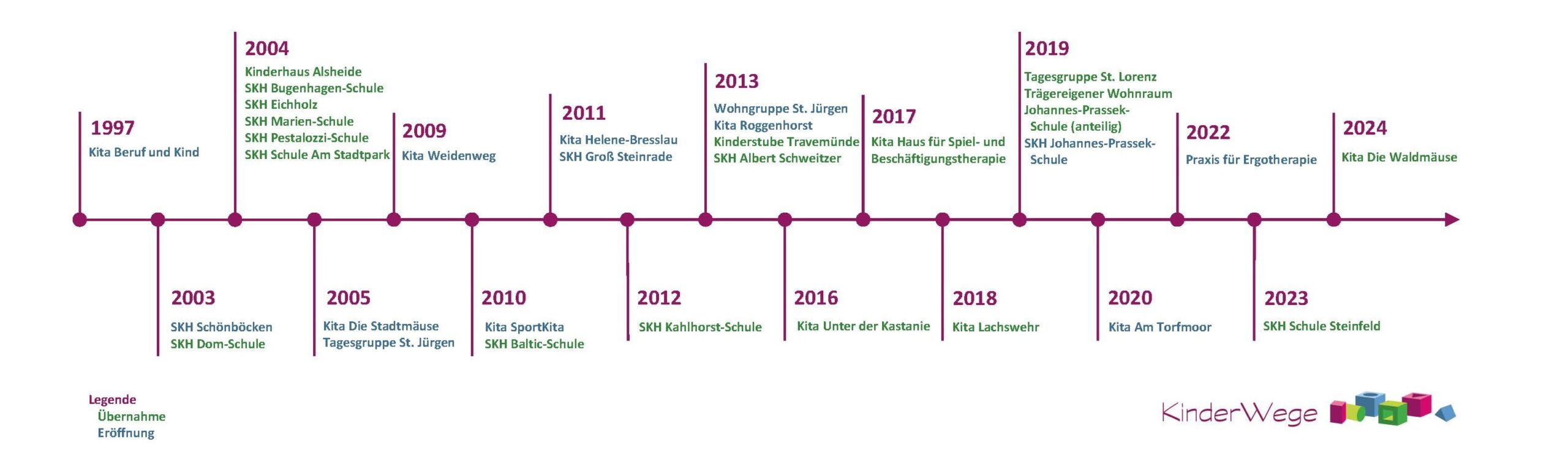 KinderWege wurde 1996 vom Diplom-Psychologen Joachim Karschny und der Diplom-Sozialpädagogin Sabine Müller-Horn-Bruns gegründet – mit der klaren Vision Kinderbetreuung neu zu denken und Wege zu schaffen, um sowohl den Bedürfnissen der Kinder als auch den Herausforderungen berufstätiger Eltern gerecht zu werden.